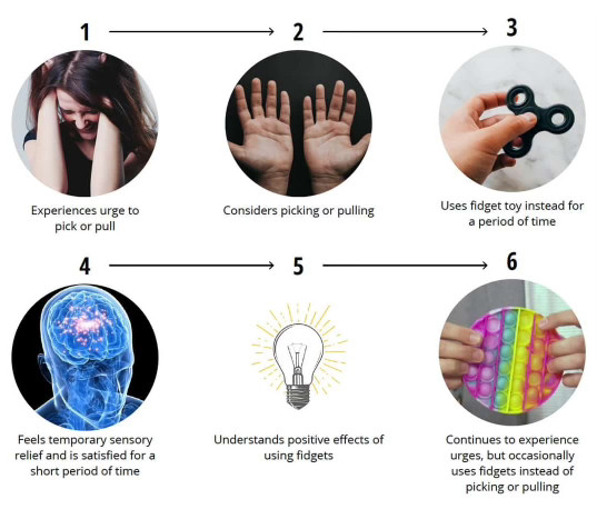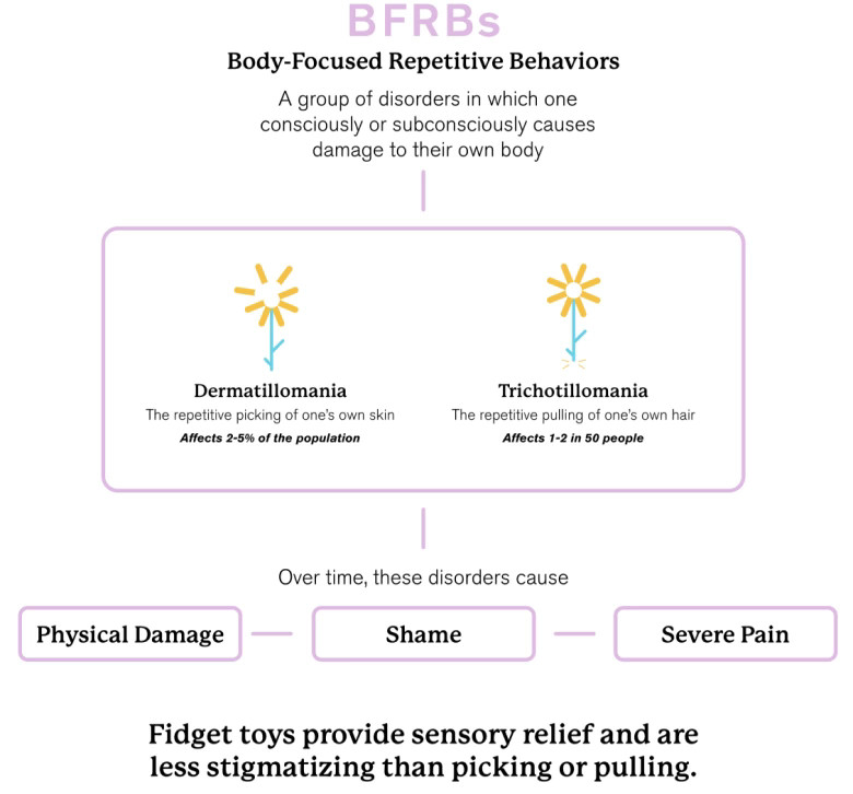 Journey of an individual with a BFRB with the use of a traditional fidget toy.