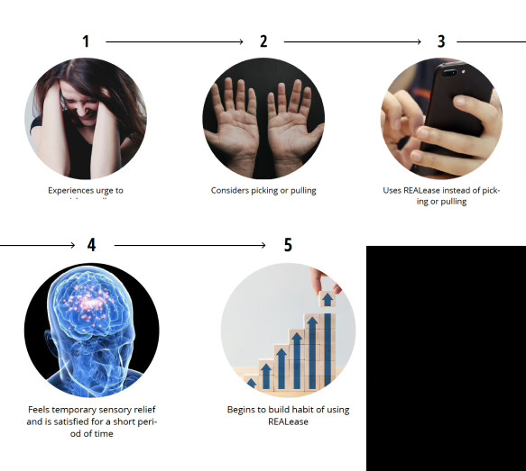 REALease is a digital fidget toy mobile app that provides relief for young adults with Body-Focused Repetitive Behavior Disorders by providing sensory and visual stimulation.