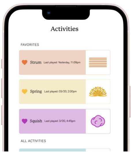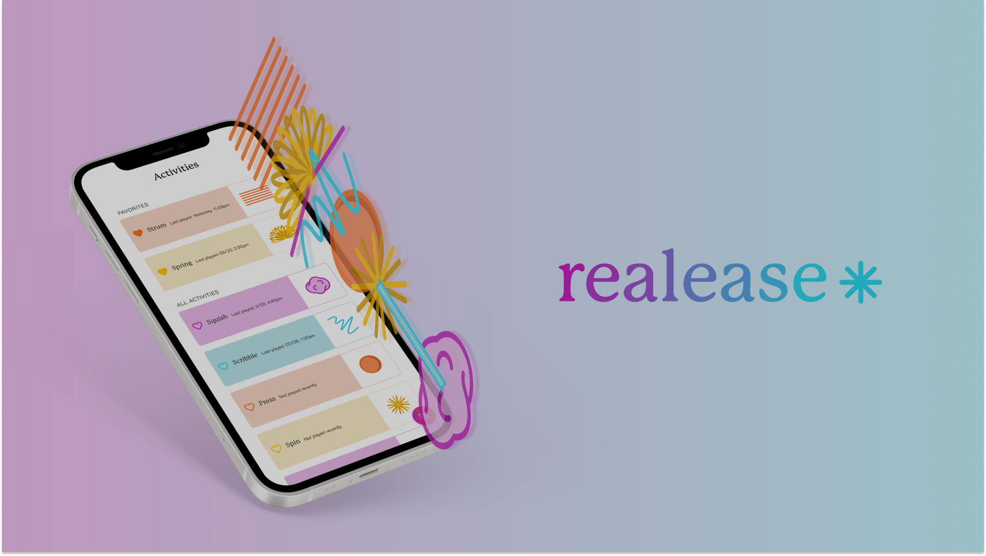 With young adults as a primary audience, Realease is a mobile application as users are already comfortable in a digital environment. It also allows for discreet, convenient use.The design of the activities corresponding with haptic (vibration) feedback is crucial to successfully providing a sensory experience through a mobile device. The activities chosen were designed with the intent to provide relief for picking/pulling urges.Bright colors mimic the often vibrantly colored nature of physical fidget toys and make the overall experience enjoyable, whimsical, and game-like.